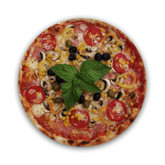 Tomato Sauce, Mozzarella, Pizza Condiments, Oregano, Mushrooms, Ham, Chiken Breast